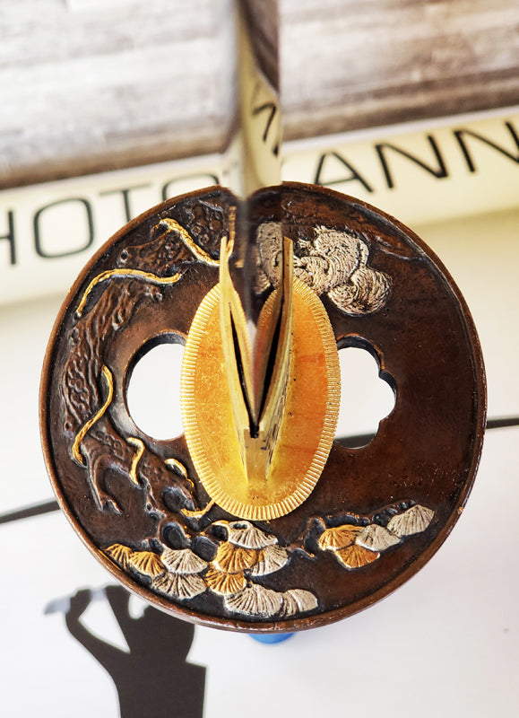 - Tsuba (Guard): Gold and silver-plated bronze.