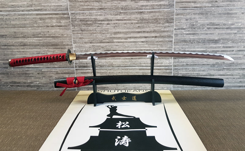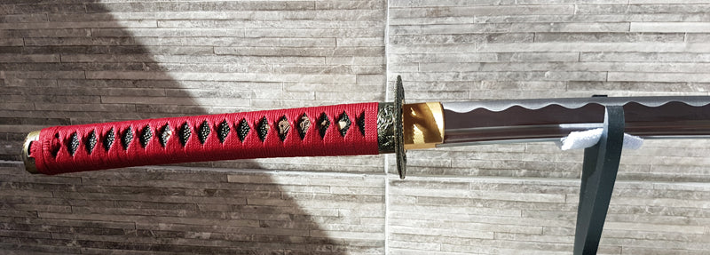The Habaki is a metal piece that separates the blade of the sword from the scabbard. It has both an aesthetic and functional purpose, ensuring the connection between both. Small scratches are normal due to use.