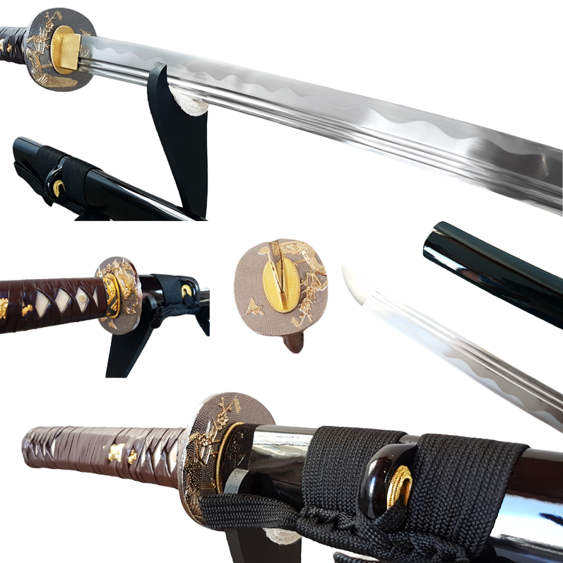 - Tsuka (handle): Synthetic leather, hardwood, and genuine ray skin