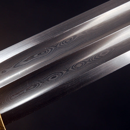 - Blade Material: 1060 carbon steel core (Shintetsu) + 1095 carbon steel folded 11 times, creating 2048 layers of Damascus steel around the core (Kawatetsu), Honsanmai structure.