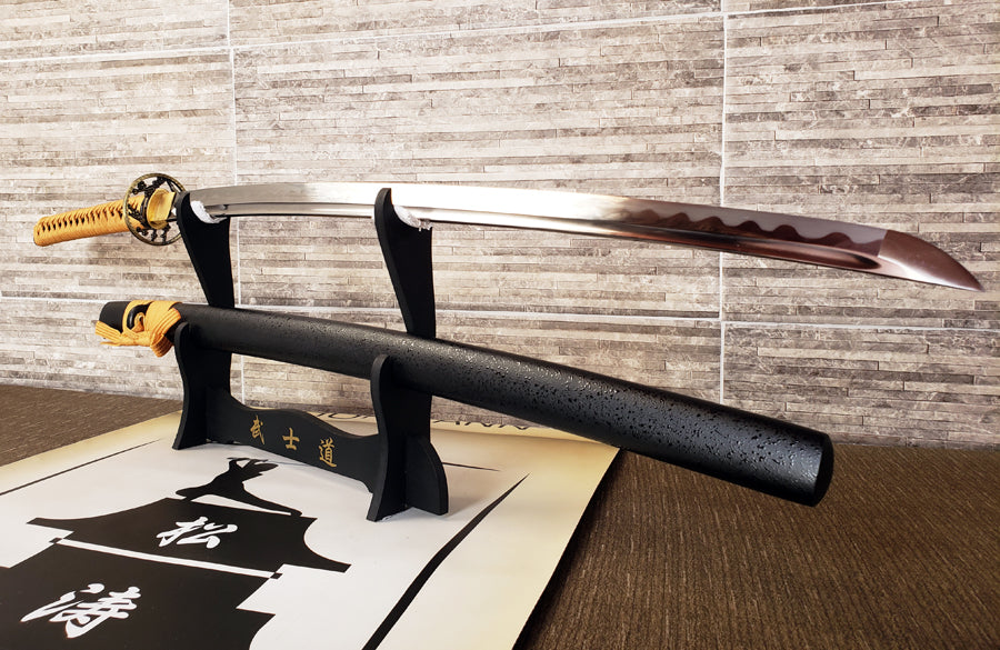 Hand-forged and polished through 12 different procedures, the Katana Gaara offers a perfect balance between cutting, resistance, weight, and practicality. Its blade, made of 1095 carbon steel, is specially designed for cuts and impacts. The blade is full tang, extending to the end of the handle, ensuring enough resistance for impacts. Rigorously tested (Tameshigiri), this katana is effective for both heavy and light cuts. The blade is handcrafted and sharpened through twelve sharpening processes, following the traditional molds of katanas from feudal Japan. The pieces are precisely and firmly fitted, avoiding any kind of wobble during handling.