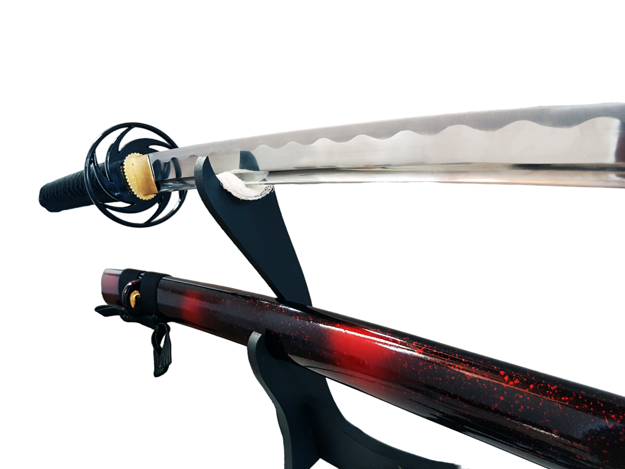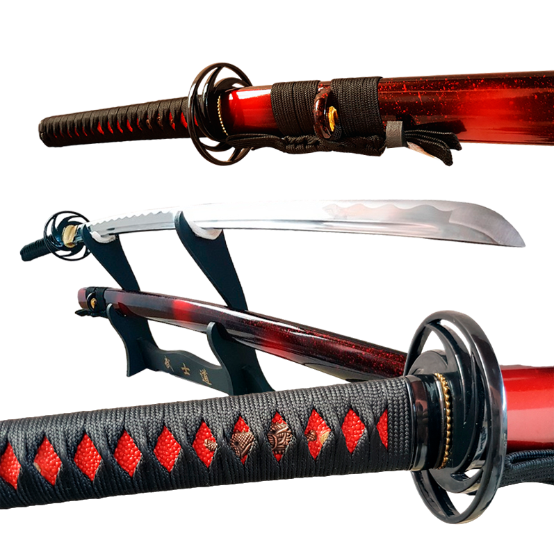 The blade of the Kodai Katana is meticulously hand-forged and polished with 12 distinct procedures, following ancestral techniques that ensure a superior finish. Sharp and robust, it has passed all cutting tests (Tameshigiri) with flying colors, demonstrating its effectiveness in both heavy and light cuts. With a perfect balance of cutting ability, strength, weight, and practicality, the blade is solid, extending to the handle to ensure maximum resistance to impact. Each katana is handcrafted and sharpened according to the molds of traditional katanas from feudal Japan, with parts assembled with precision to prevent any wobble during use.