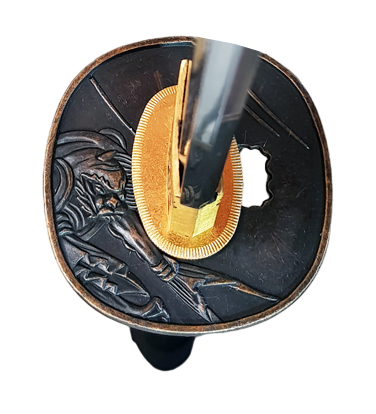 - Tsuba: The tsuba, located above the saya, is decorated and made by metal fusion. It serves to protect the user's hand from slipping over the blade during use.