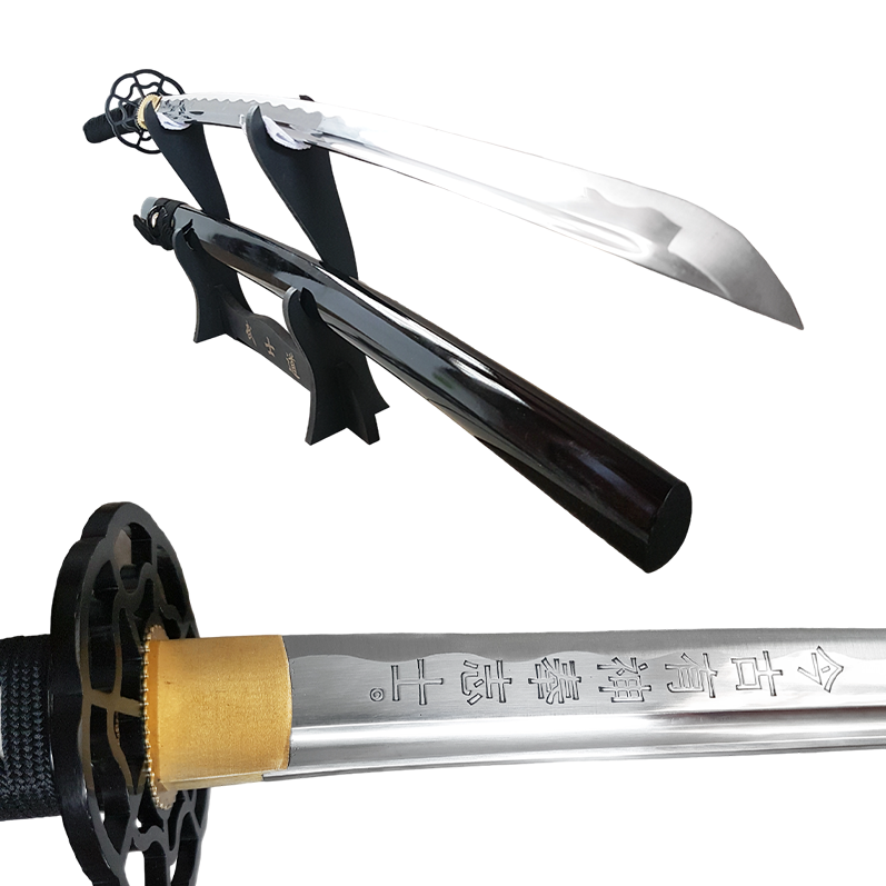 Hand-forged and polished with 12 different procedures, the Kyoran Katana offers a perfect balance between cutting, durability, weight, and practicality. This sword, with inscriptions that translate to “I belong to the warrior where the old style met the new,” captures the essence of the samurai legacy, remaining relevant to modern times. Sharp and resilient, the Kyoran has passed all cutting tests (Tameshigiri), being effective in both heavy and light cuts.