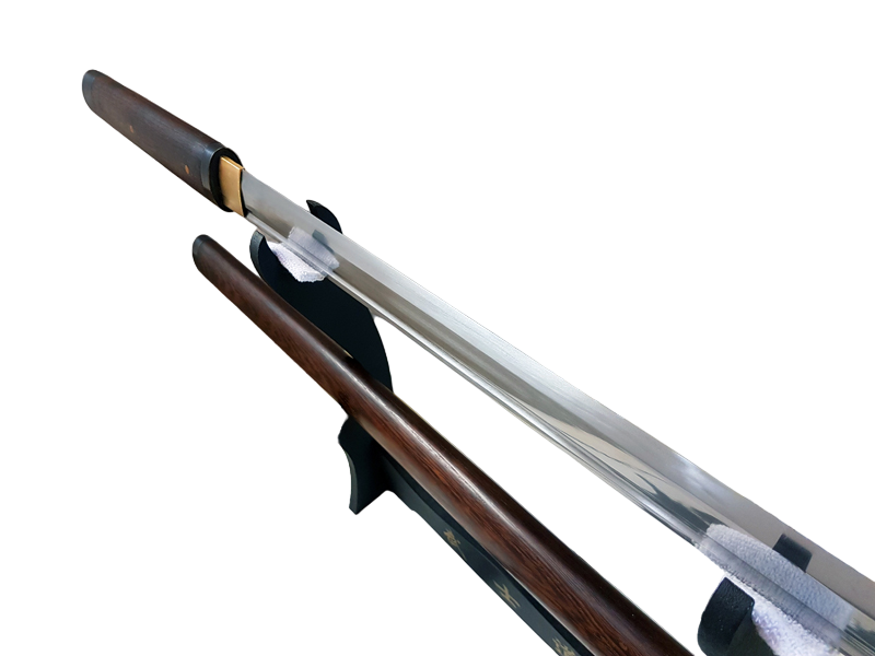 The Shirasaya Reta Sakamoto is made for professional and responsible training, with a hand-forged blade polished through 12 different processes. This sword, with its hidden blade in a Brazilian Jacaranda wood saya, offers a perfect balance of cutting ability, resistance, weight, and practicality, being sharp and tested to ensure maximum efficiency in both heavy and light cuts.